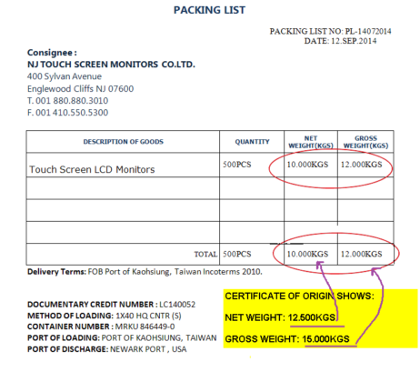 Packing List and Certificate of Origin Show Different Net Weight or ...