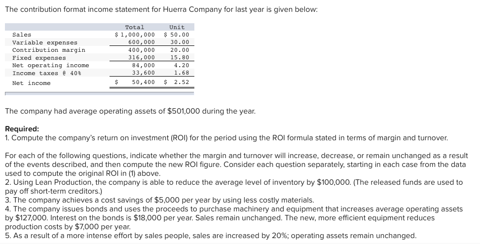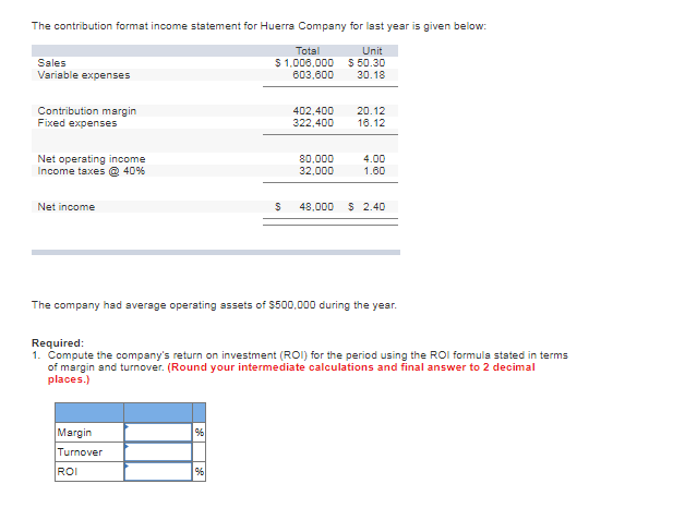 Stunning The Contribution Format Income Statement For Huerra Company ...