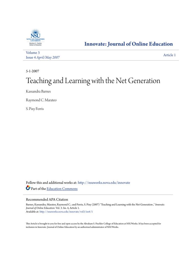 Topic 3 - Teaching and Learning With The Net Generation | PDF
