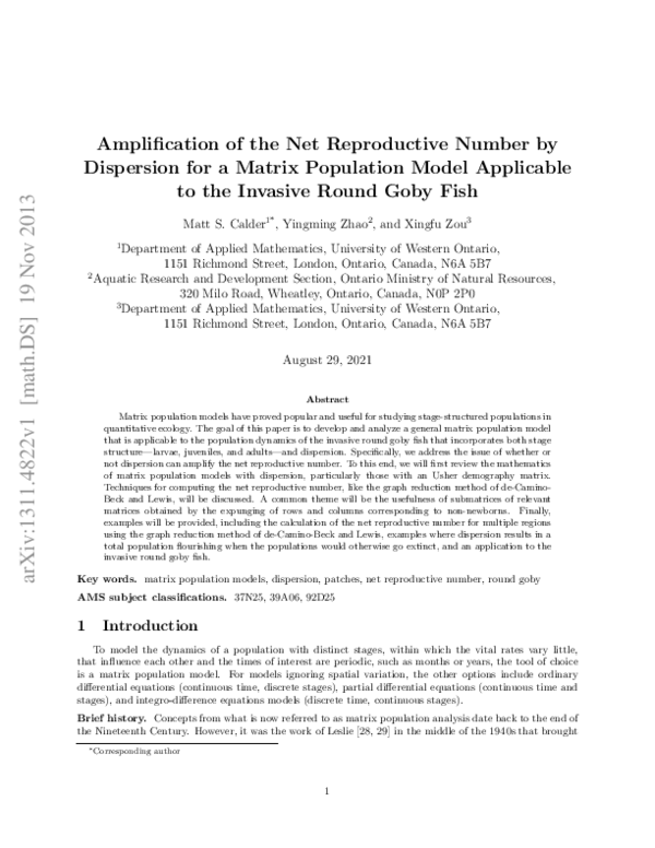 (PDF) Amplification of the Net Reproductive Number by Dispersion for a ...