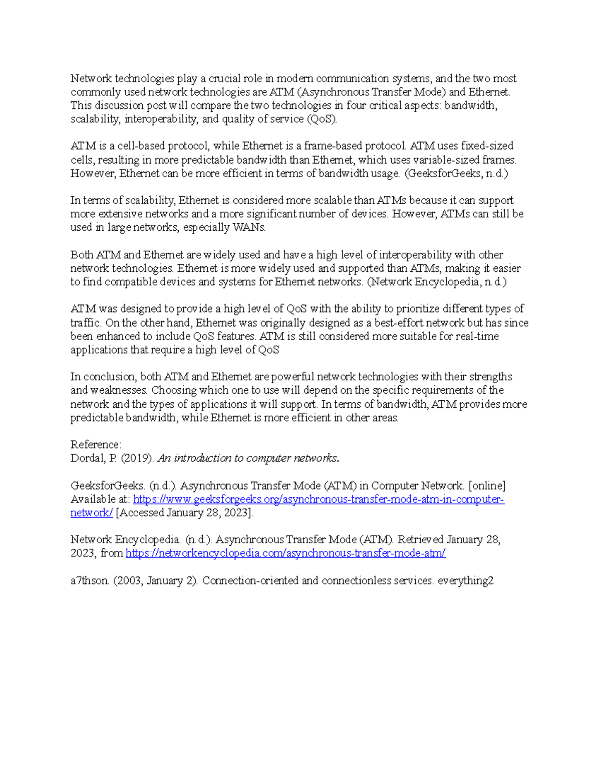 CS2204 Discussion Assignment week 1 - Network technologies play a ...