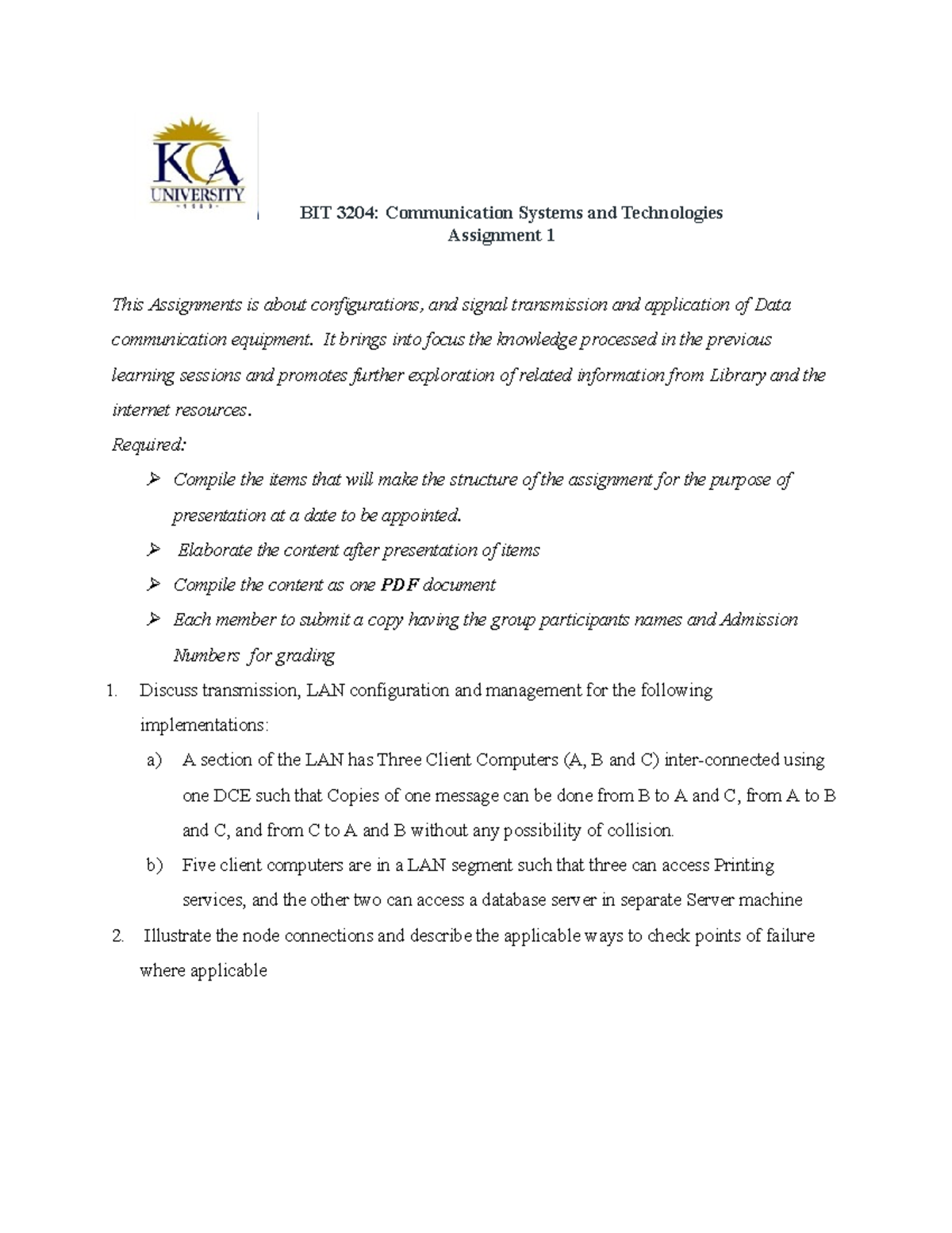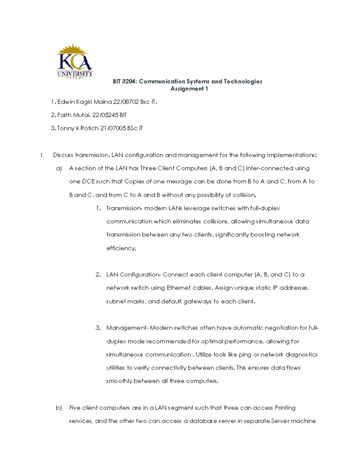 Assignment 1 June 2024 group 6 - BIT 3204: Communication Systems and ...