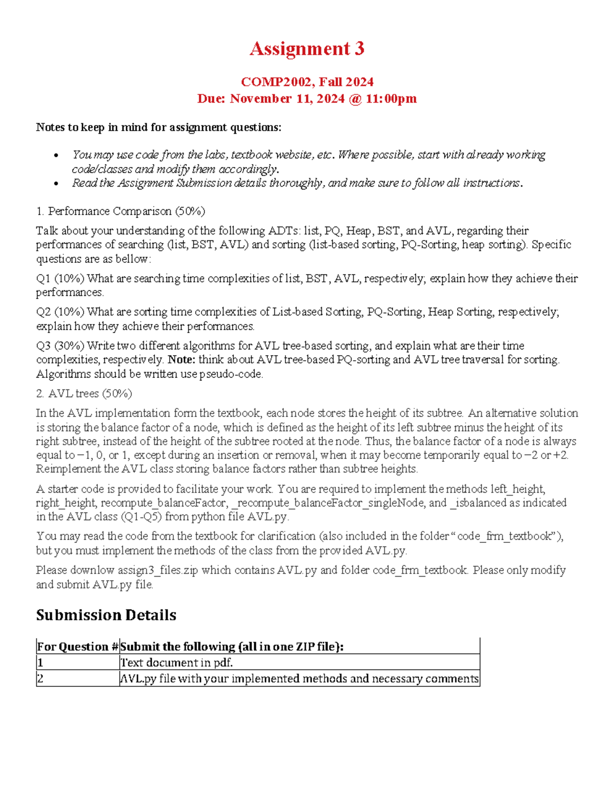 Assign 3 - Assignment 3 COMP2002, Fall 2024 Due: November 11 , 20 24 ...
