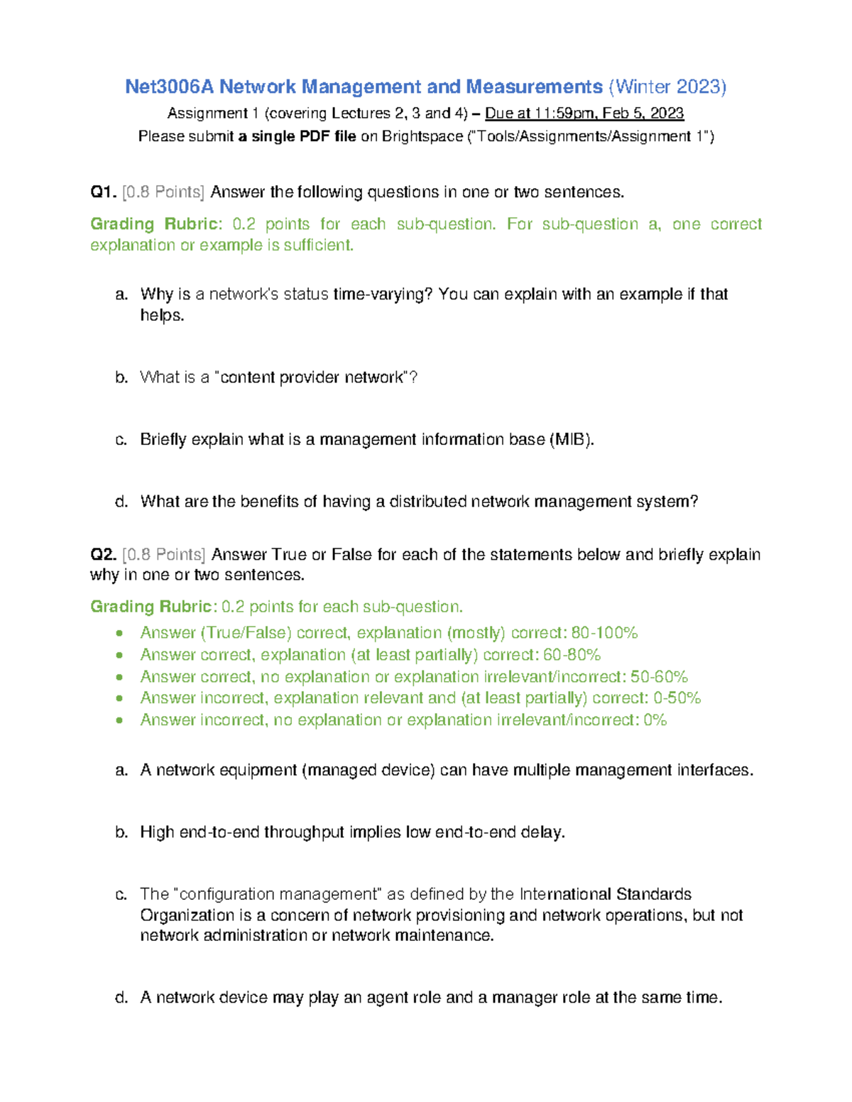 Assignment 1 - Net3006A Network Management and Measurements (Winter ...