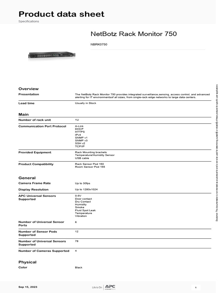APC NetBotz Rack Monitor 750 ( NBRK0750 )