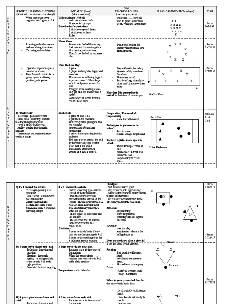 Netball Teaching Plan at Marylynn Boucher blog