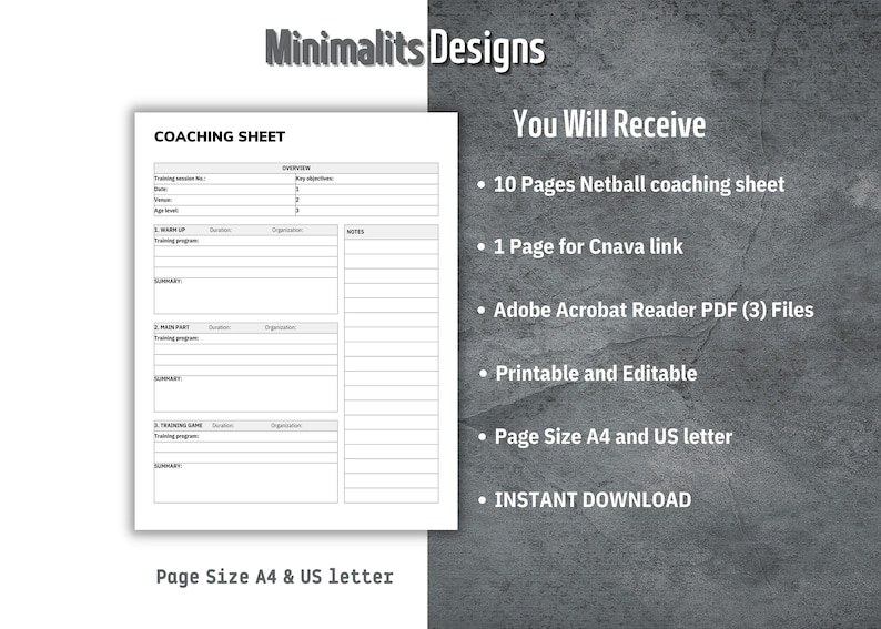NETBALL COACHING PACK - Downloadable A4 Template - Etsy Australia