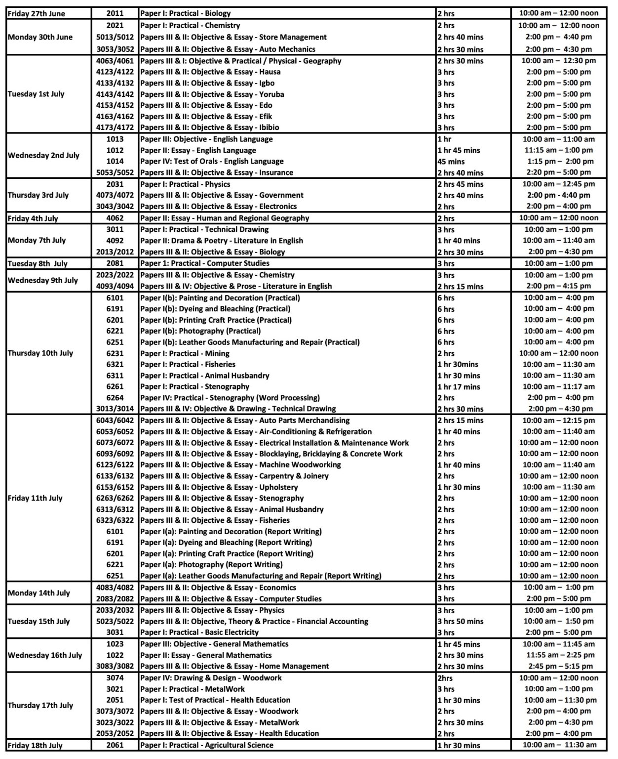 NECO Timetable 2025 SSCE Internal With PDF » Servantboy