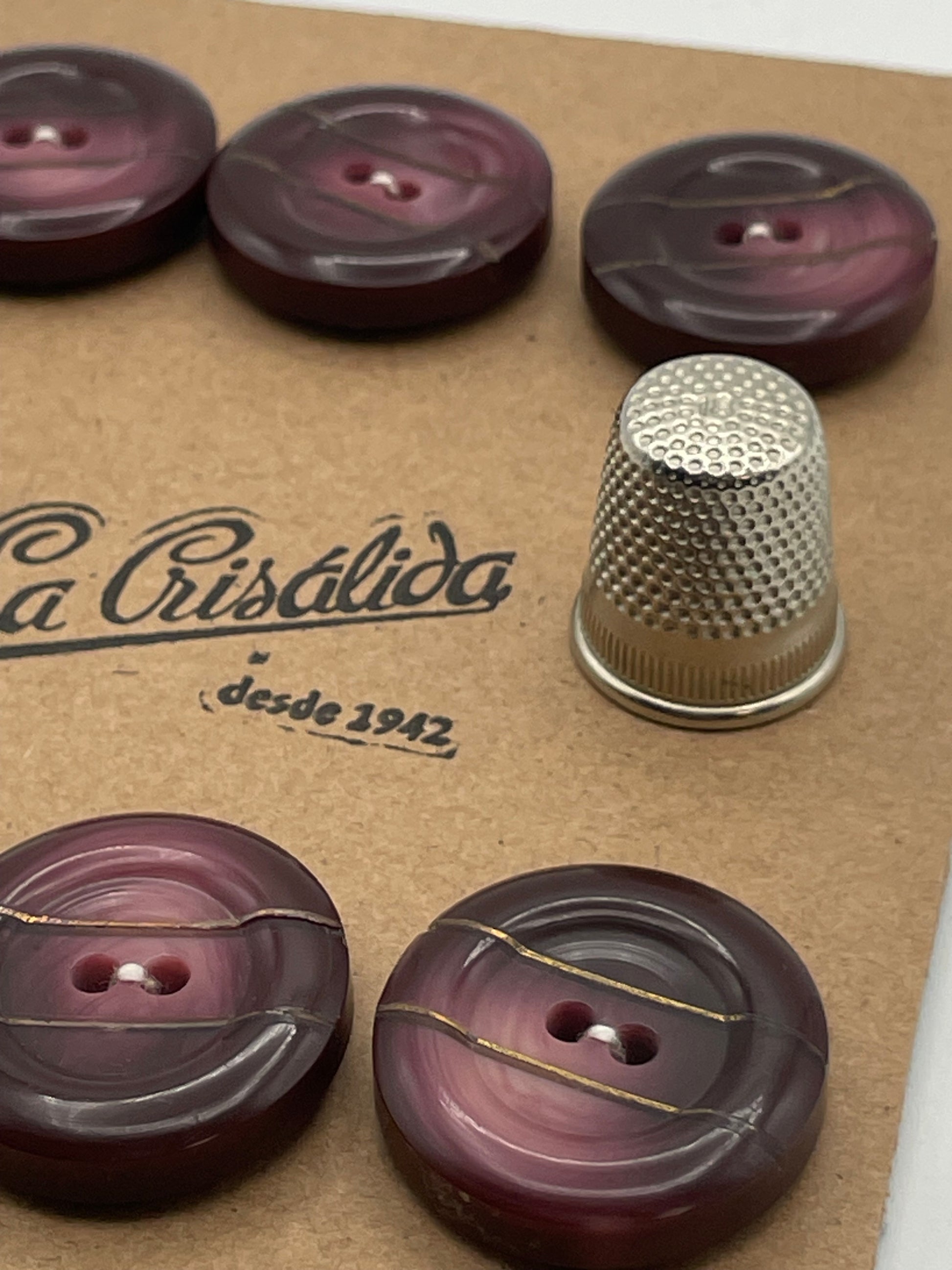 Cartón con 6 botones vintage de pasta color berenjena. Edición especia ...