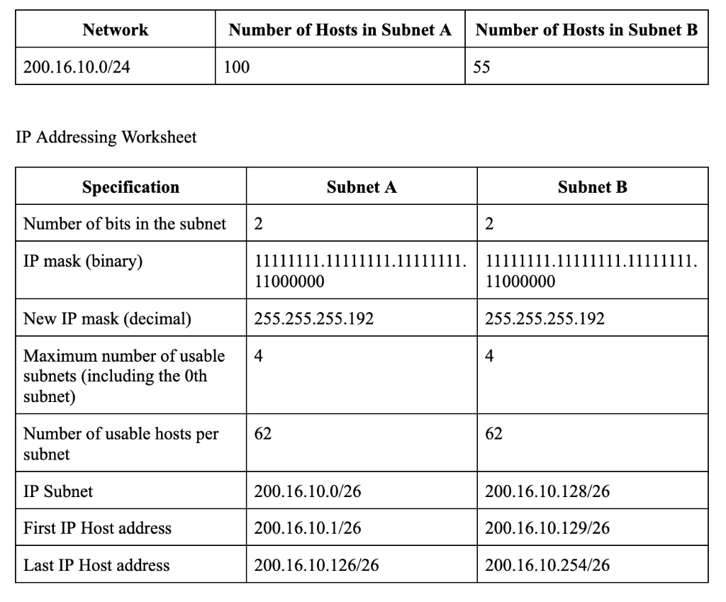 Solved Network Number of Hosts in Subnet A Number of Hosts | Chegg.com