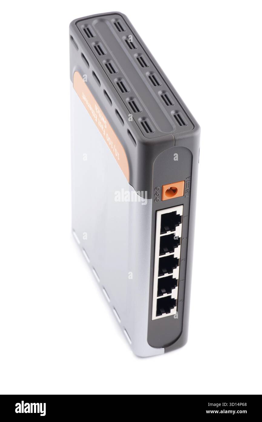 Object on white - ETHERNET switch close up Stock Photo - Alamy