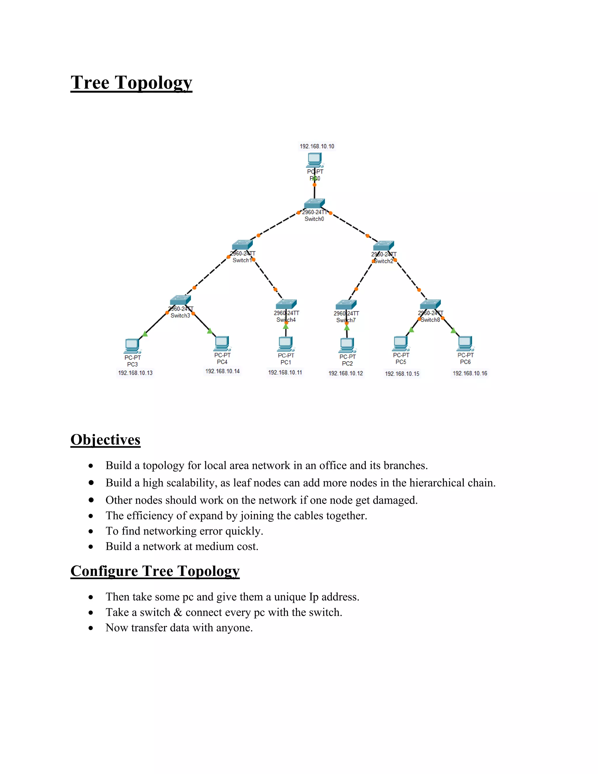 how to make computer network working model with a tree topology ...