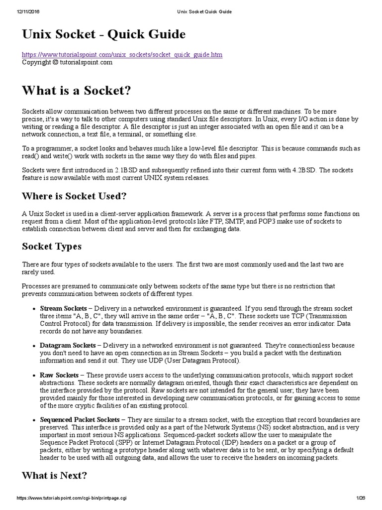 Unix Socket - Quick Guide | PDF | Port (Computer Networking) | Network ...