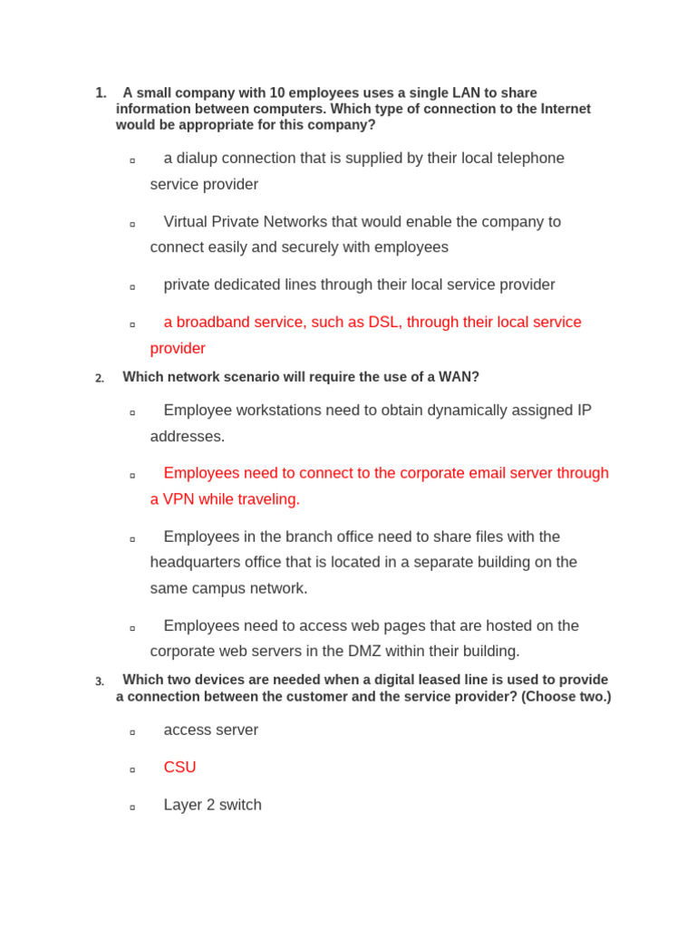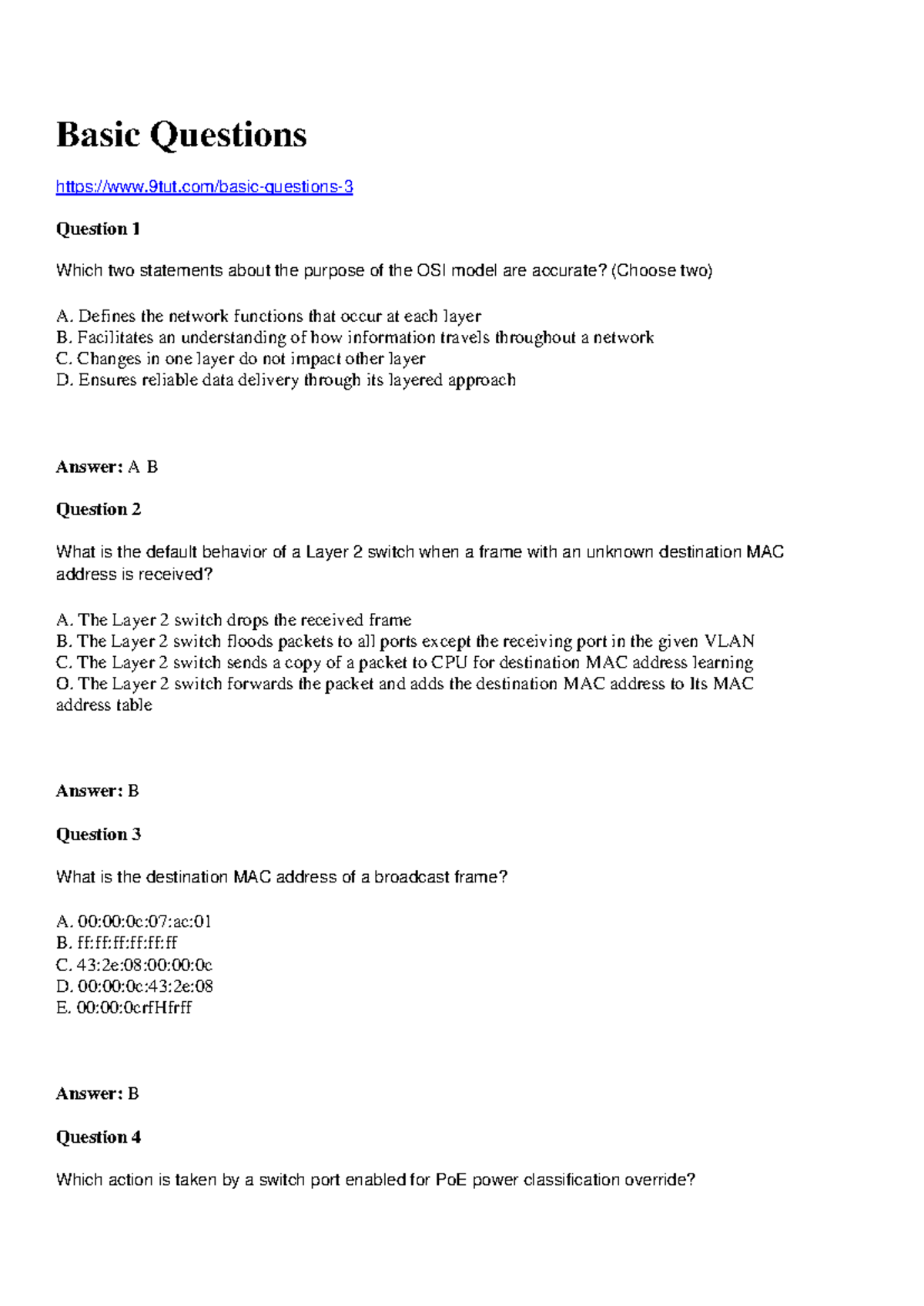 Networking Practice Questions and Answers (Course Code: 11.1) - Studocu
