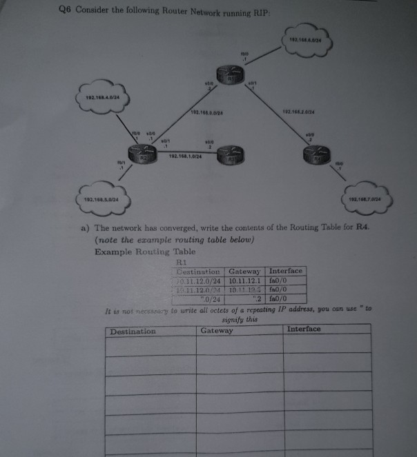 Q6 Consider the following Router Network running RIP: | Chegg.com