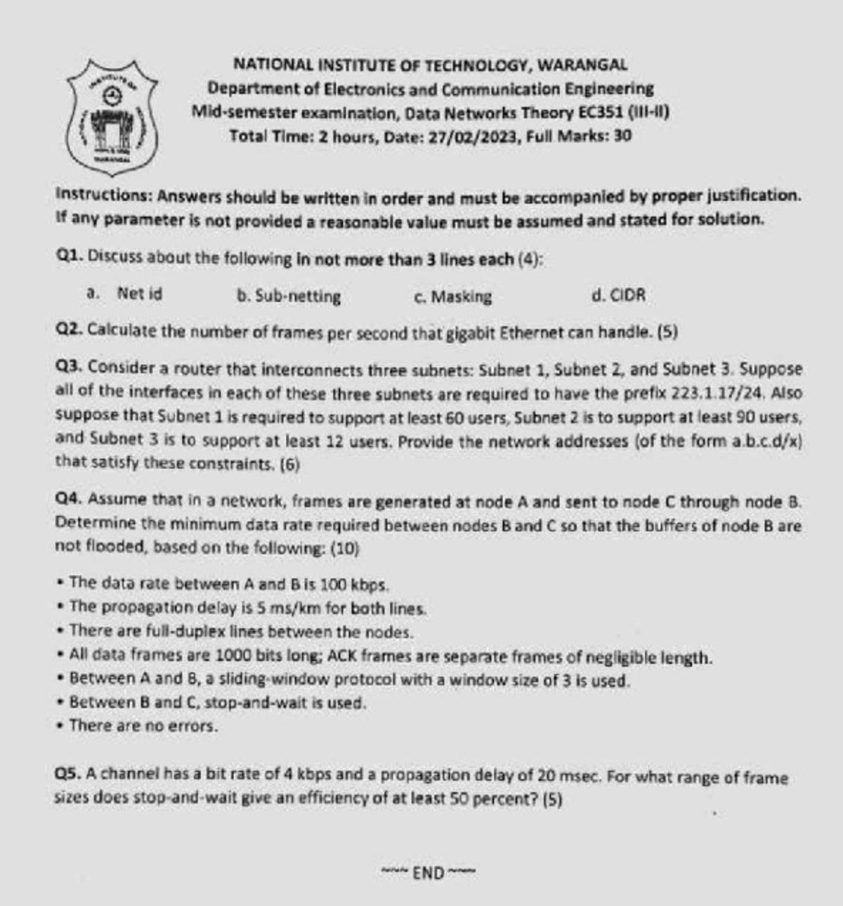 Data Networks Theory EC351: Previous Year Questions and Solutions - Studocu