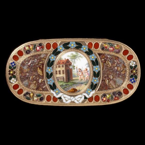 A jewelled gold-mounted hardstone and micromosaic snuff box, Johann ...