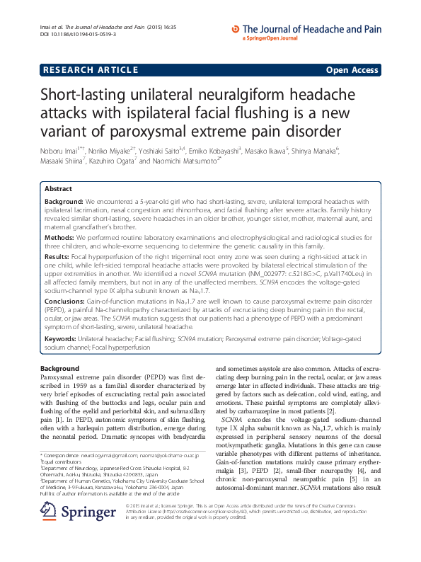 (PDF) A case of short–lasting unilateral neuralgiform headache with ...