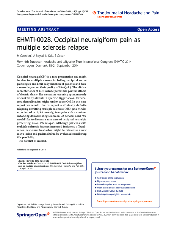 (PDF) EHMTI-0028. Occipital neuralgiform pain as multiple sclerosis relapse