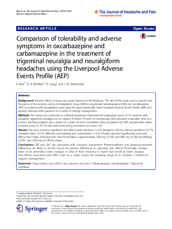 (PDF) Comparison of tolerability and adverse symptoms in oxcarbazepine ...