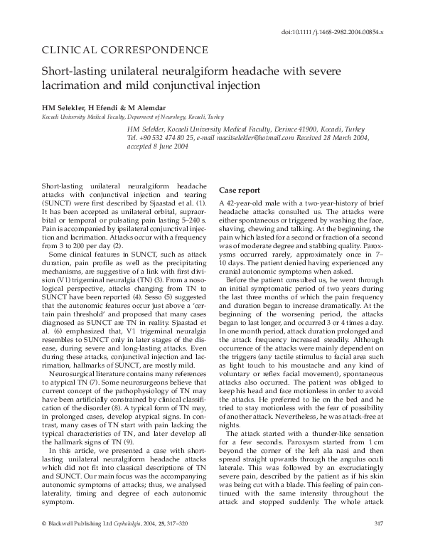 (PDF) Short-lasting Unilateral Neuralgiform Headache with Conjunctival ...