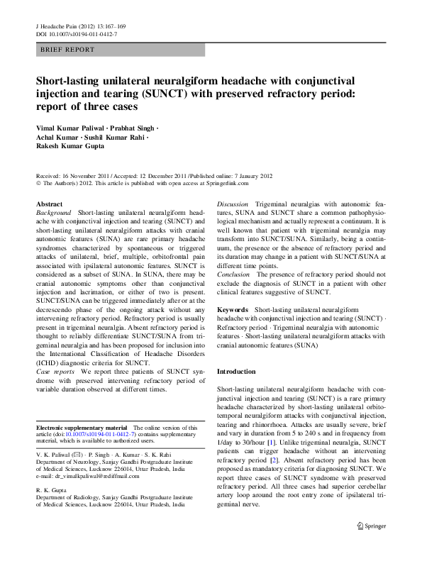 (PDF) Short-lasting unilateral neuralgiform headache attacks (SUNCT ...