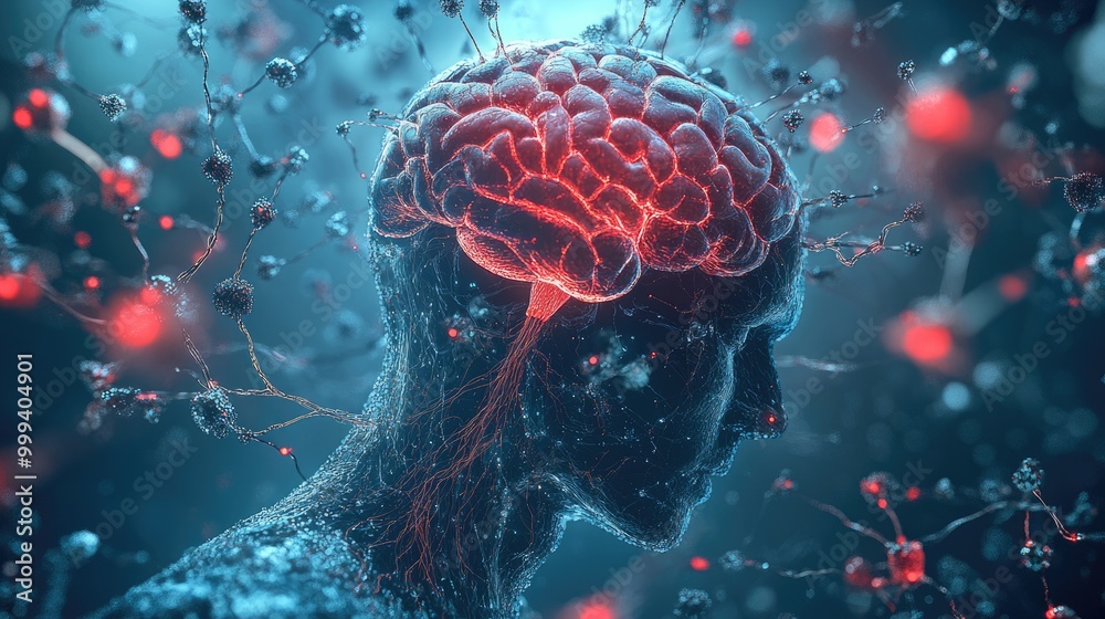 Complex Schematic Illustration of Human Nervous System Featuring Brain ...
