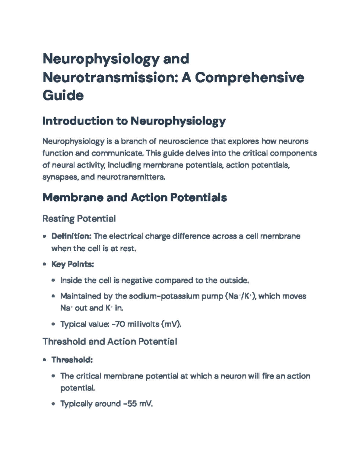 Neurophysiology and Neurotransmission: A Detailed Study Guide ...