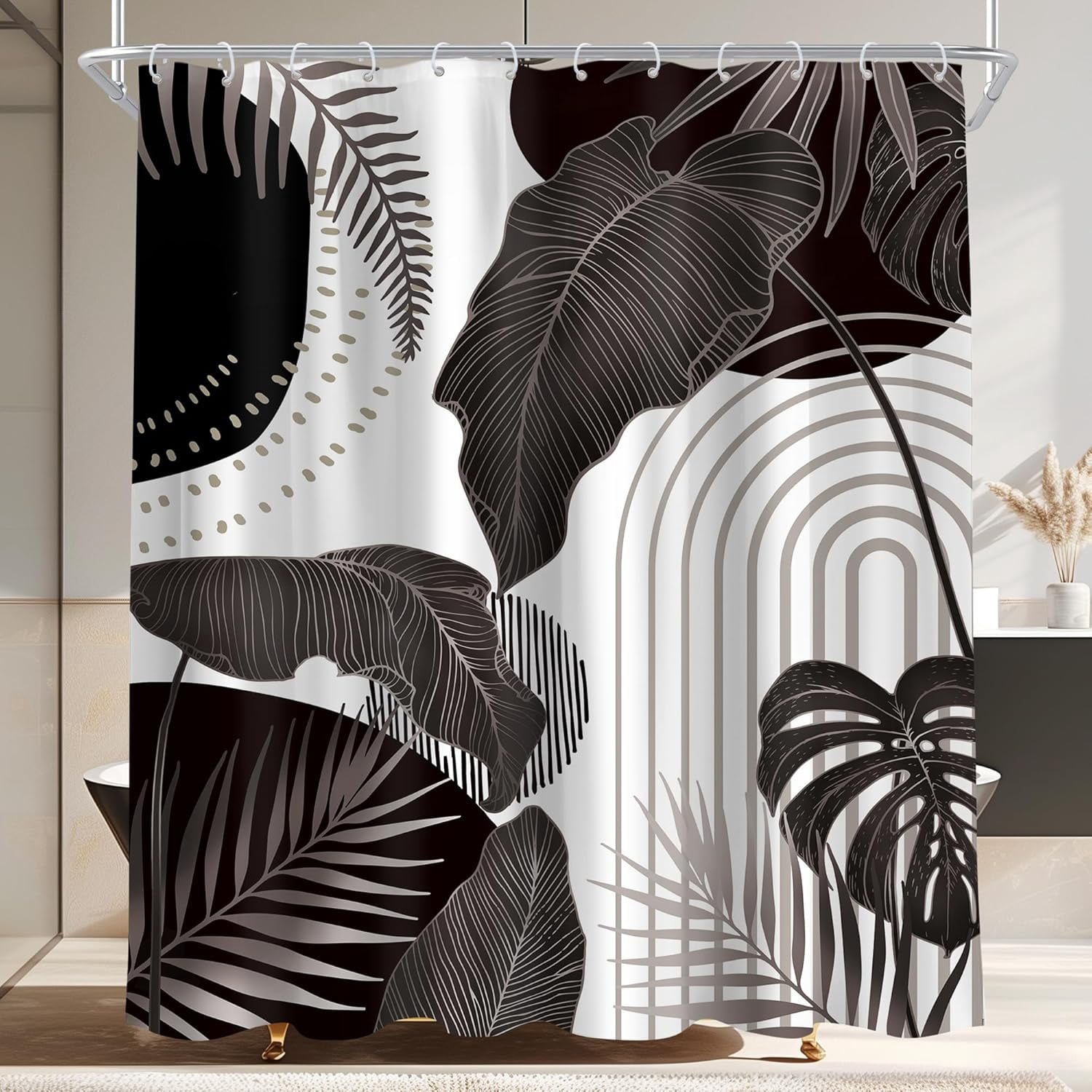 Black Boho 72Wx72H Shower Curtain Mid Century Modern Abstract Tropical ...