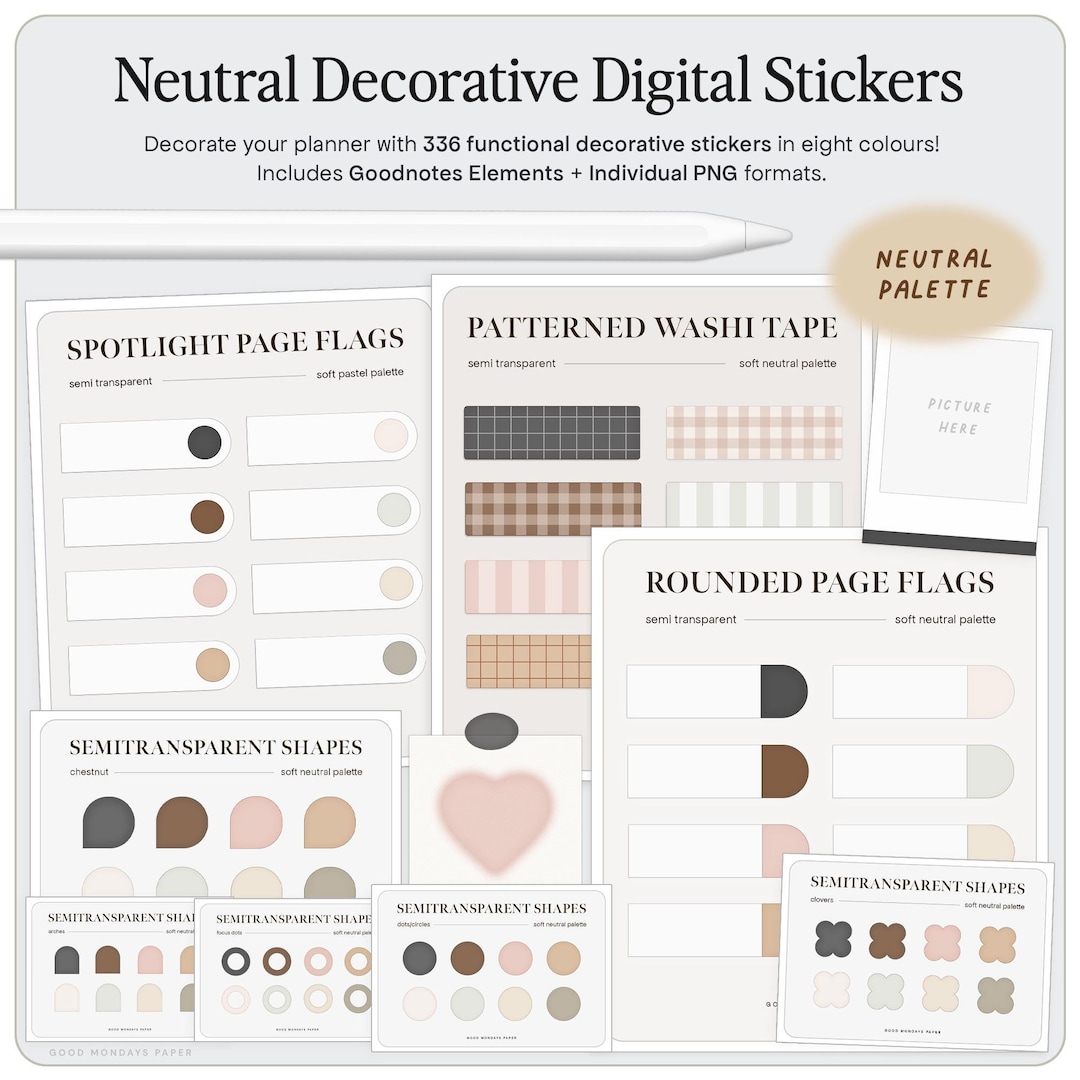 Goodnotes Neutral Sticker Set | 700+ Digital Stickers, iPad Journaling ...