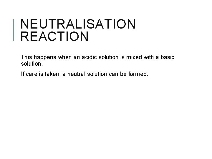 NEUTRALISATION REACTION NEUTRALISATION REACTION This happens when an