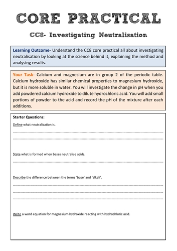 CC8d Core Practical Neutralisation | Teaching Resources