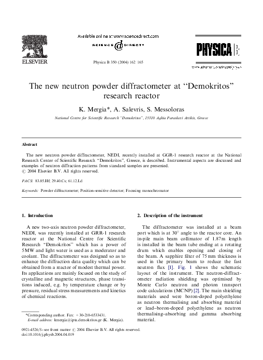 (PDF) The new neutron powder diffractometer at “Demokritos” research ...