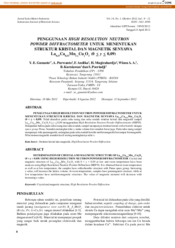 (PDF) PENGGUNAAN HIGH RESOLUTION NEUTRON POWDER DIFFRACTOMETER UNTUK ...