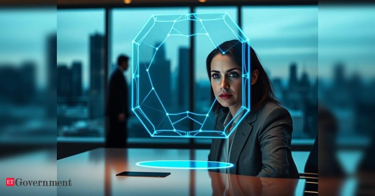 Man Navigating A Hologram Featuring Abstract Network Lines Stock Photo ...