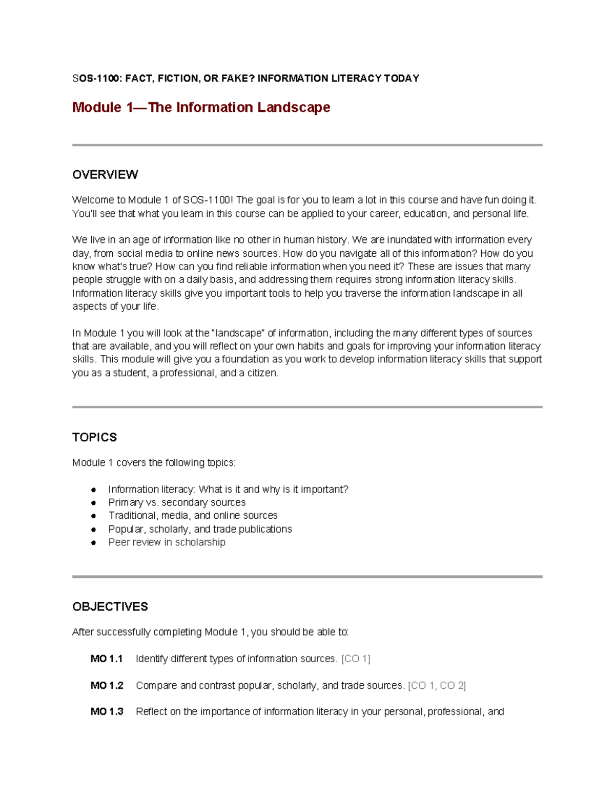SOS-1100 Module 1: Navigating the Information Landscape - Studocu