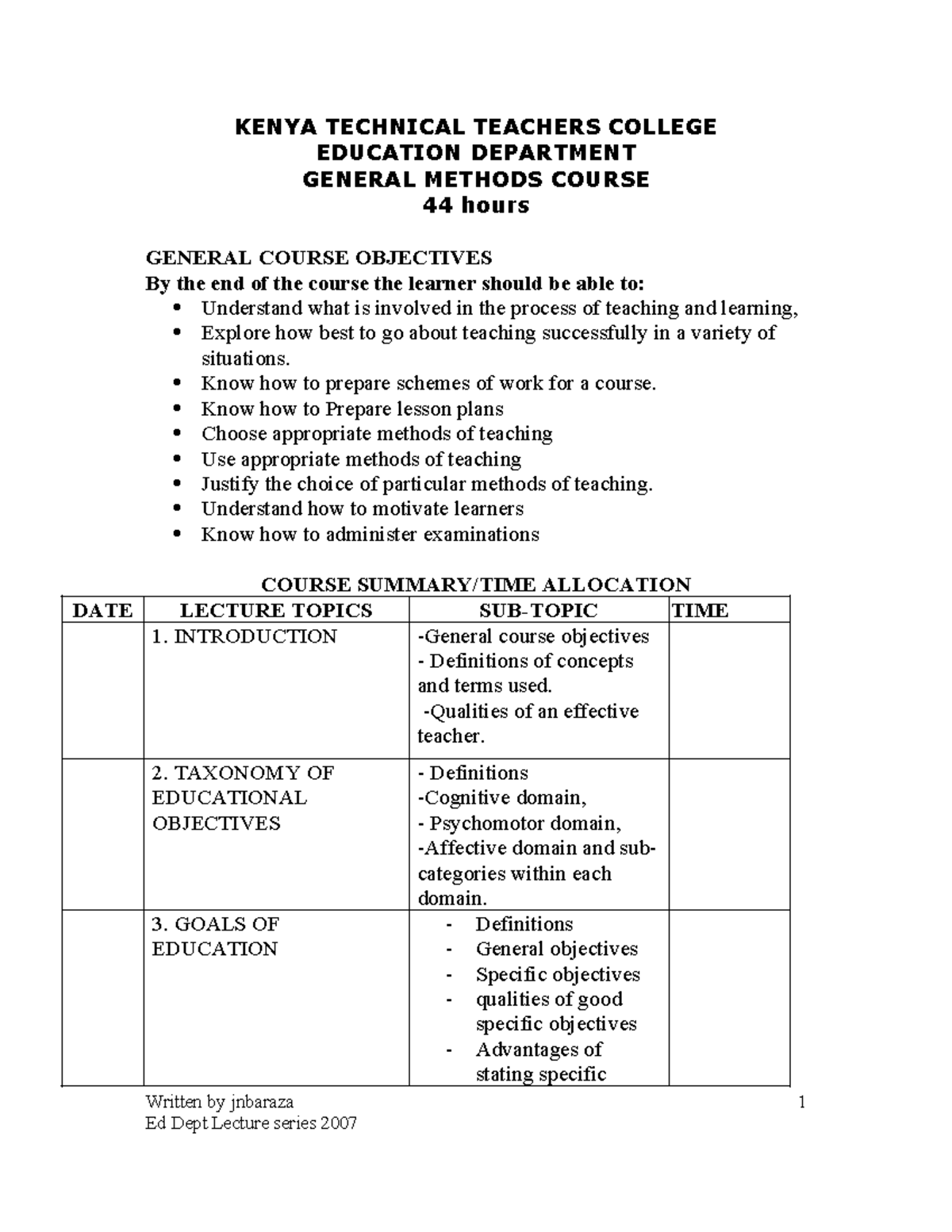 Training Methods Manual: General Methods Course Overview (EDUC 101 ...