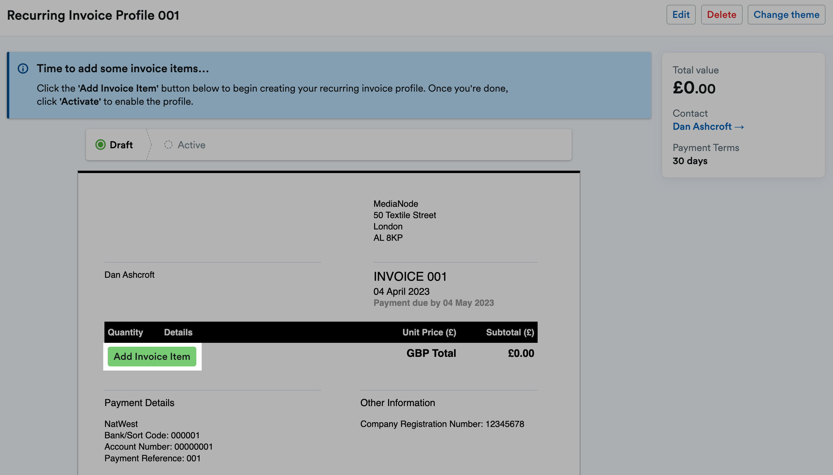 Create a new invoice – English US Sandbox