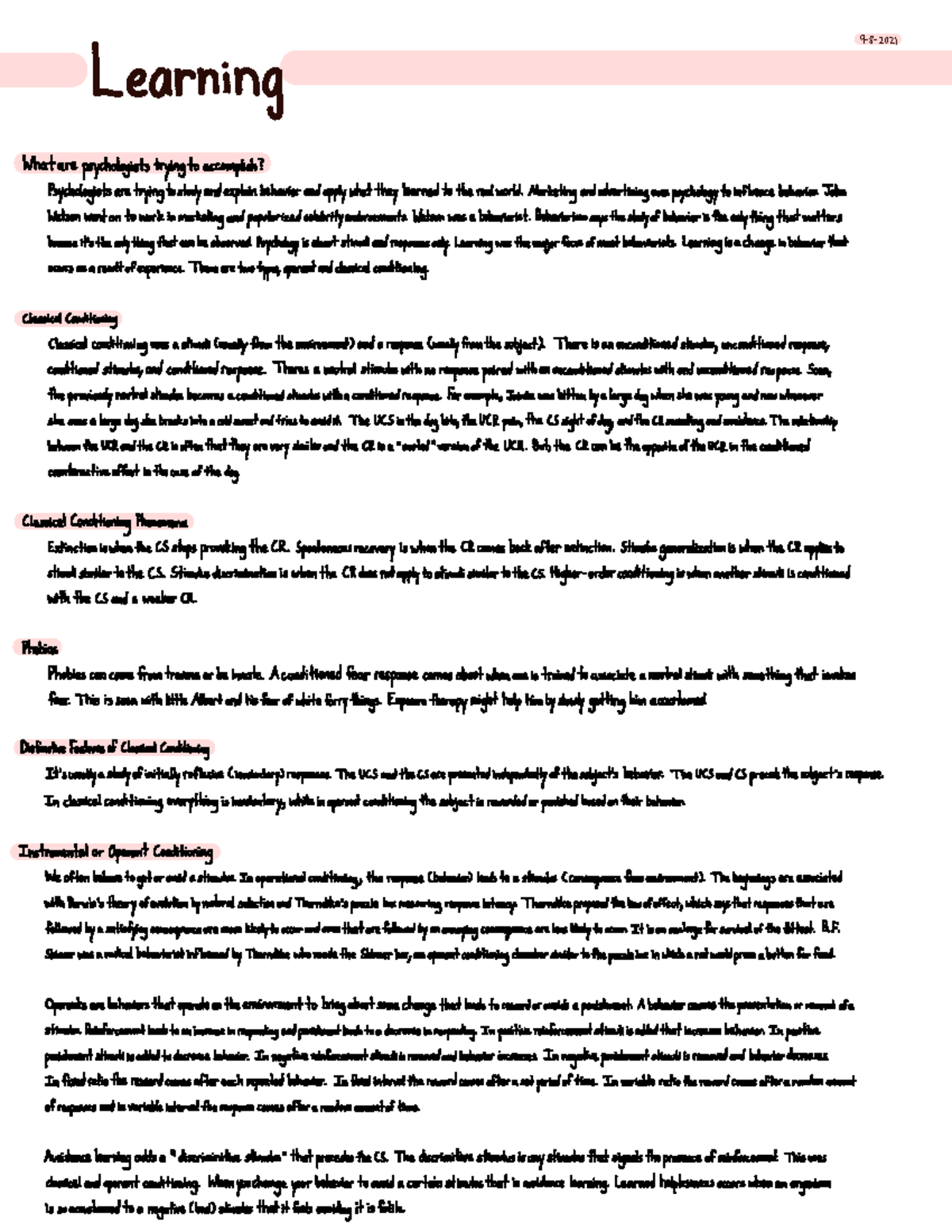 Learning - Handwritten Notes - 9-8- 2021 Learning ####### What are ...