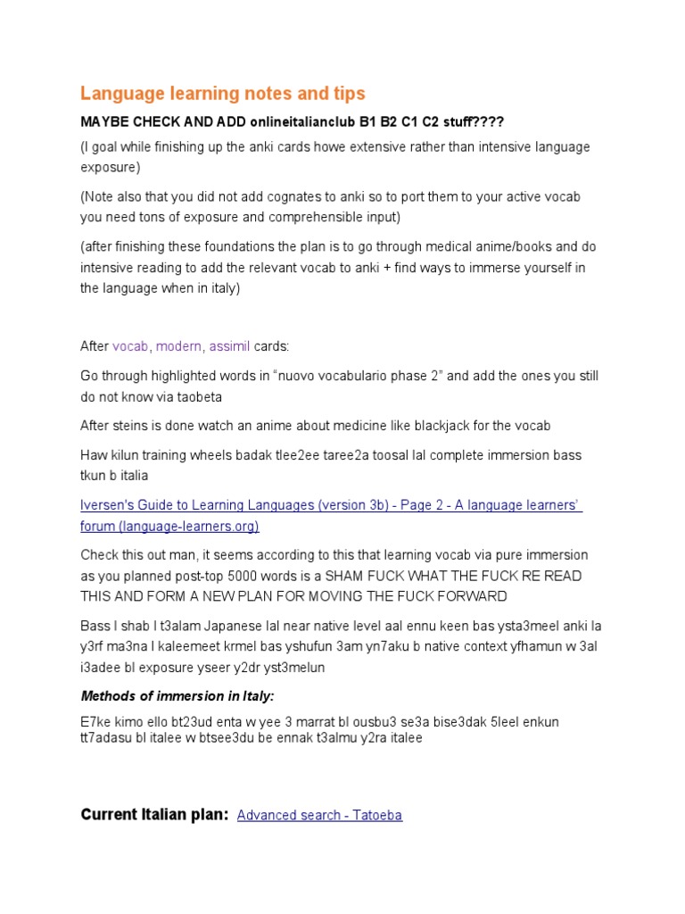 Language Learning Notes and Tips | PDF | Vocabulary | Word