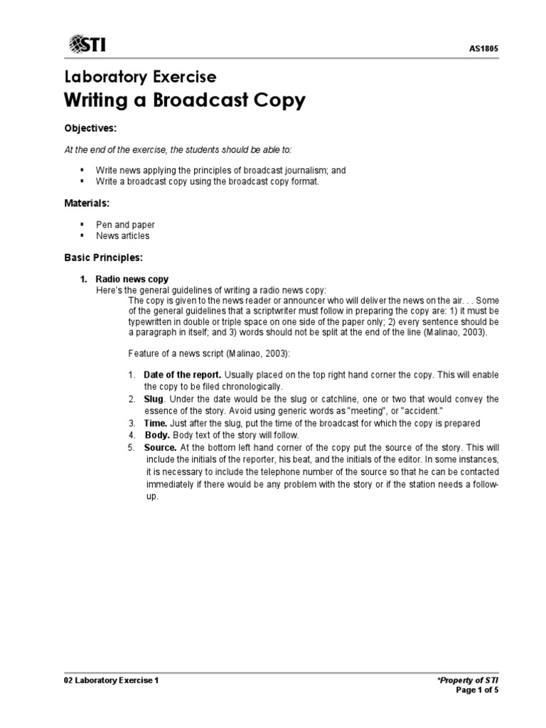 Writing A Broadcast Copy: Laboratory Exercise | PDF | News | Video