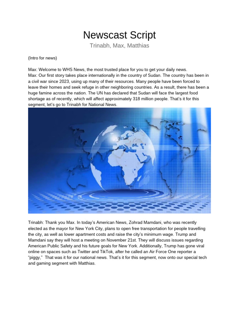Newscast Script | PDF