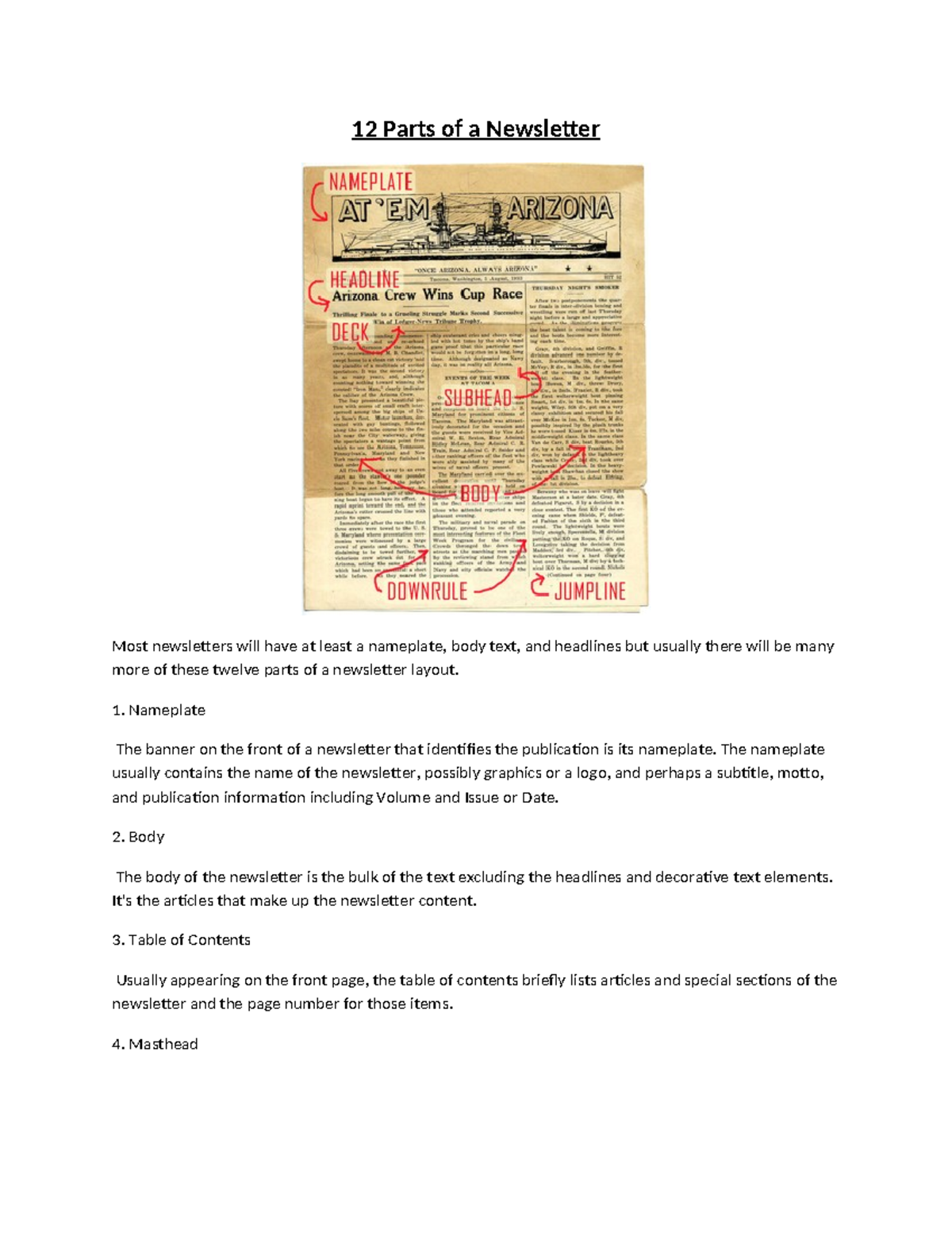 12 parts of a newsletter | PPTX