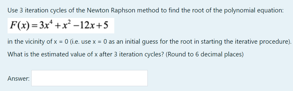 Solved Use 3 iteration cycles of the Newton Raphson method | Chegg.com