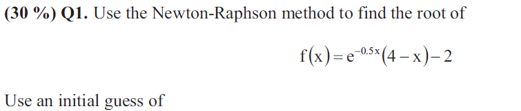 Solved (30 %) Q1. Use the Newton-Raphson method to find the | Chegg.com