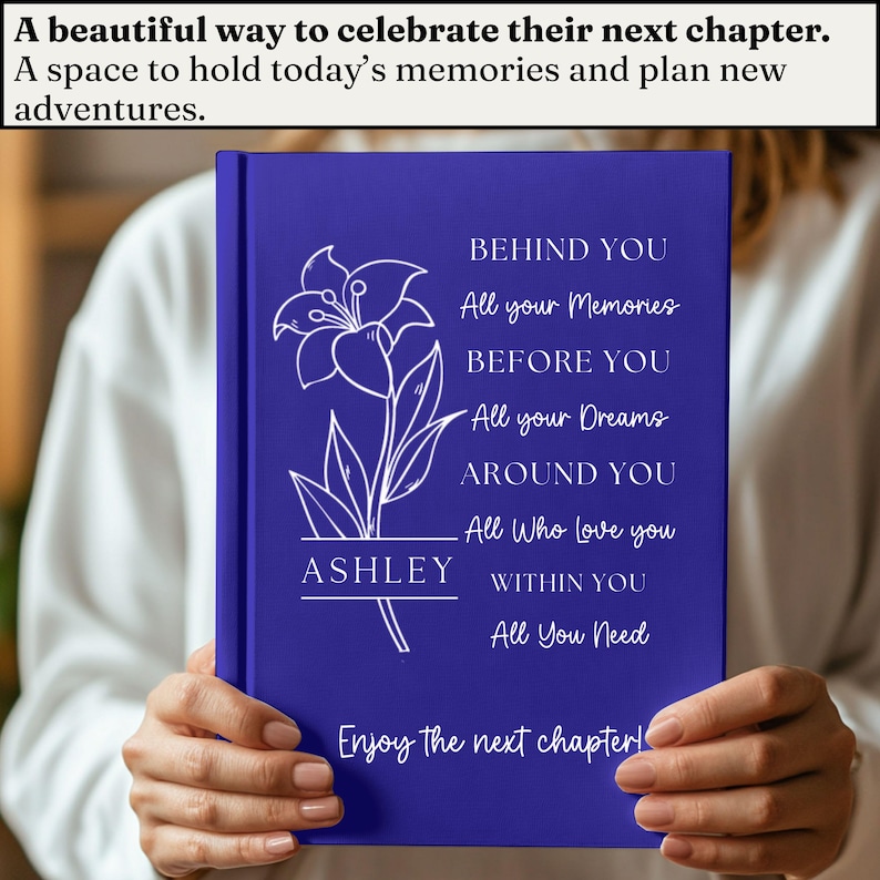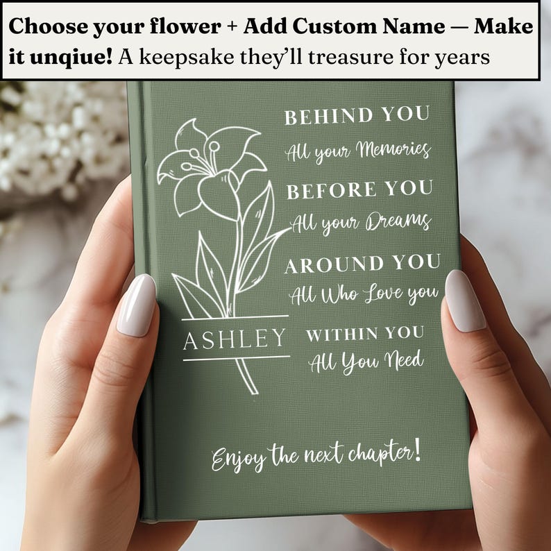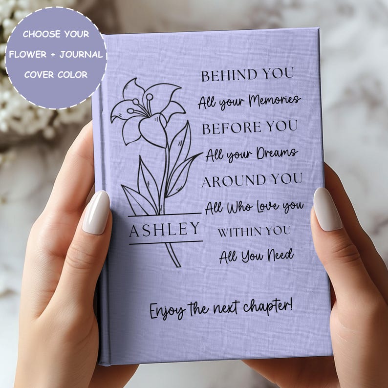 College Graduation Journal Gift, Custom Name Flower Notebook, College ...