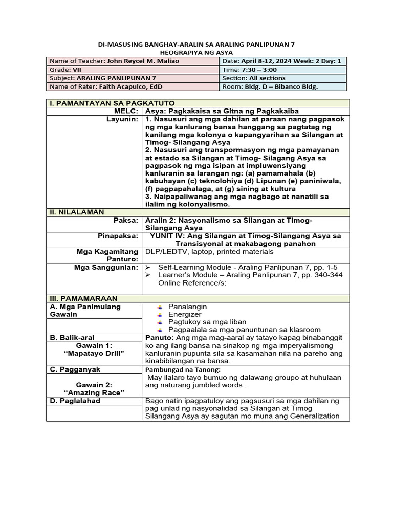 Weekly Lesson Plan by Jaycine Bax | Teachers Pay Teachers