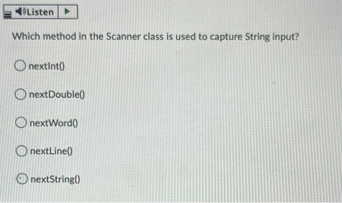 Solved Listen Which method in the Scanner class is used to | Chegg.com