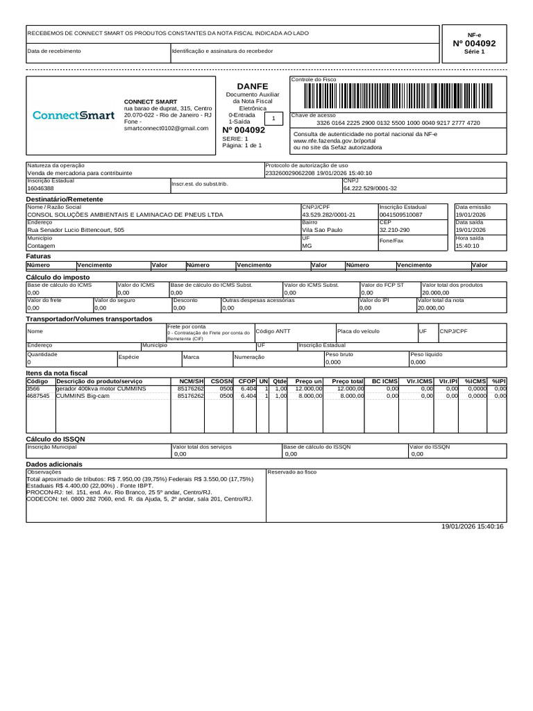 NF DE ENTRADA - N° 4.092 - CONNECT SMART | PDF | Recibo | Business