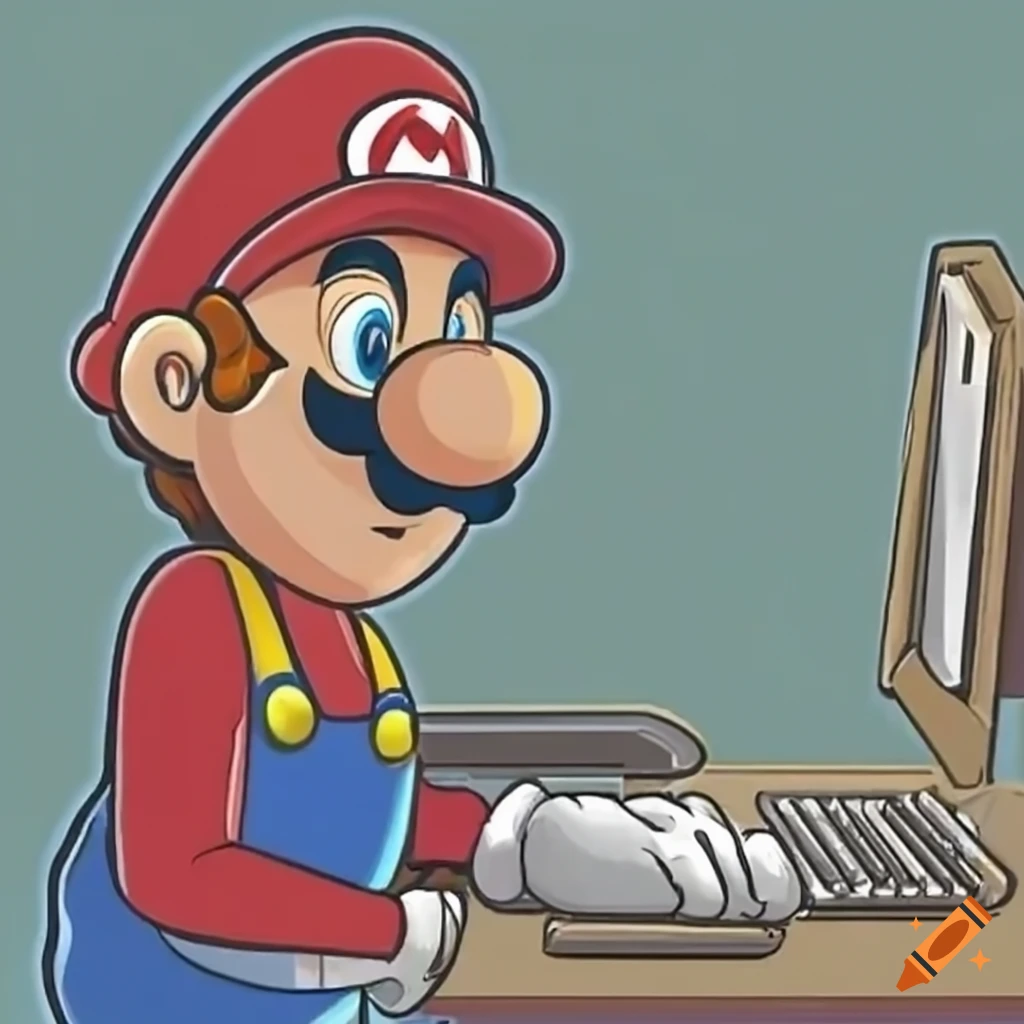 Mario using a computer on Craiyon
